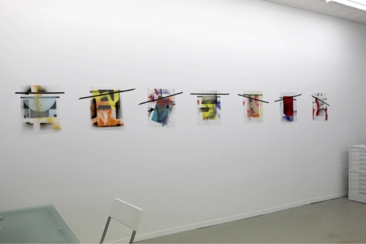 Studio Document, Summer 2011, Washington, D.C., also including taped works on the wall from Danube Series: There is no Rising or Setting Sun, Cetate, Romania