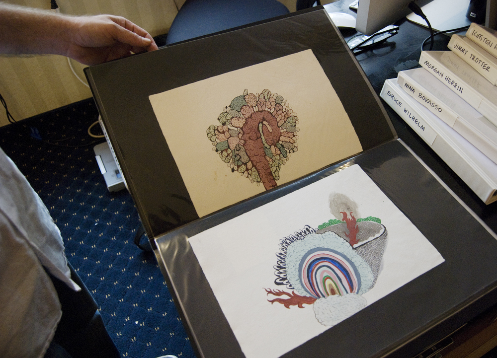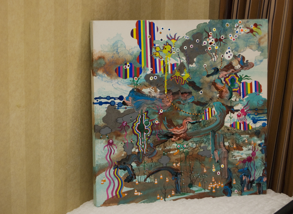Curator’s Office brought a couple of faces that are familiar to the blog — Atlanta-based husband-and-wifeAndy Moon Wilson (NAP #45) and Jiha Moon (NAP #63, #70, #82). Some of Moon Wilson’s work comes from his last show at Curator’s, which he discussed with us earlier this year. And Jiha Moon presents her characteristic technicolor works on canvas and paper — we got a peak inside her studio this past January.