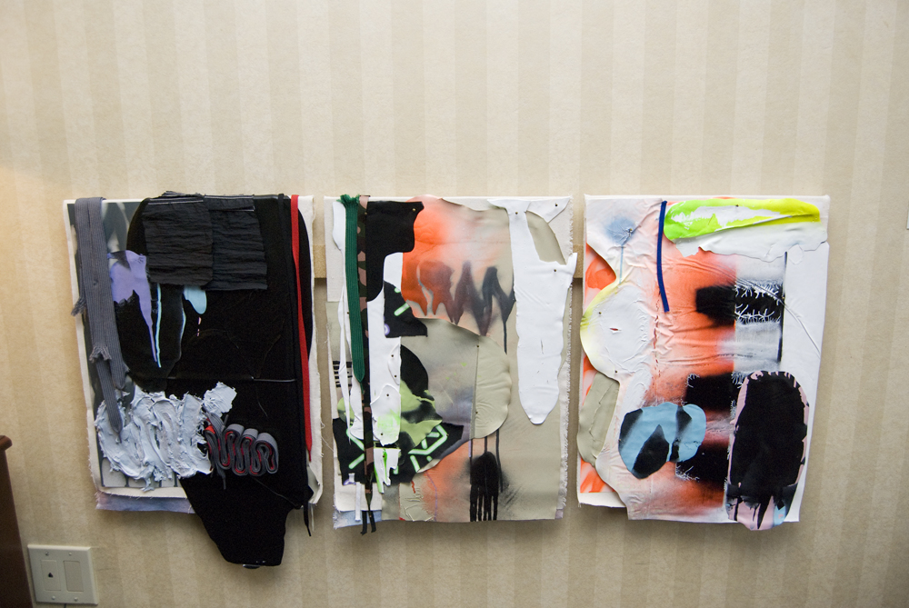 Chicago-based gallery monique meloche is featuring the work of a pair of artists, including a couple of eye-catching pieces by Kendell Carter. One of them is from the artist’s “drip paintings” and the other from his “painting constructs.” Carter’s sculptural use of materials in two-dimensional works was surprisingly unusual at (e)merge, but no doubt a welcome addition.