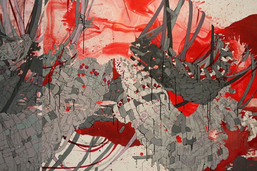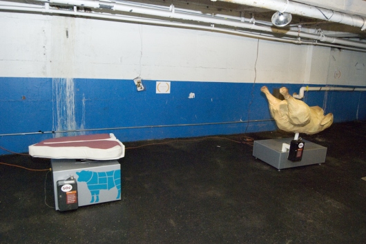 Unlike the gallery platform, two-dimensional works were a bit less common in the artist platform at (e)merge. It’s not surprising — in their call to artists the organizers expressed an interest in site-specific work that engaged with the idiosyncrasies of a hotel setting. But it may also point to the organizers’ desire to favor experimentation over commerce in this portion of the fair. There were simultaneous performances throughout (e)merge, and they were hard to miss, but we also got a look at a couple of two-dimensional works as well.