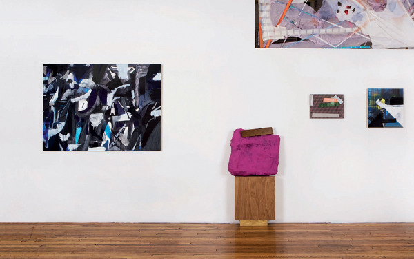 Installation view, The Working Title. (L to R) Letha Wilson, Double Dip, 2009; Patrick Brennan, The Montauk Discussion, 2010–11; Jasmine Justice, Rosy View, 2009; Benjamin King, Untitled, 2010.