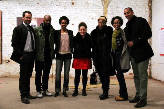 Lauren Gentile at center, with Next Generation artists (from L to R) Wyatt Gallery, Jayson Keeling, Karyn Olivier, Caitlin Cherry, Sonya Clark, and Kajahl Benes