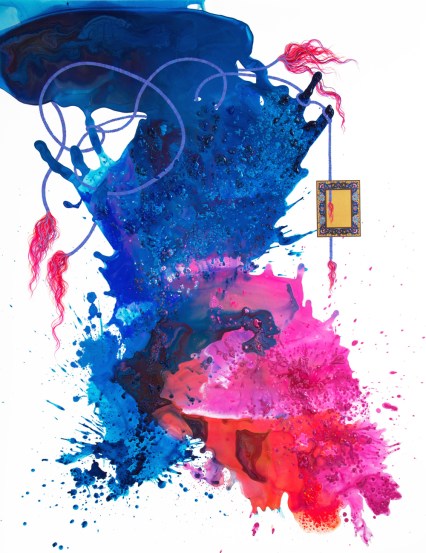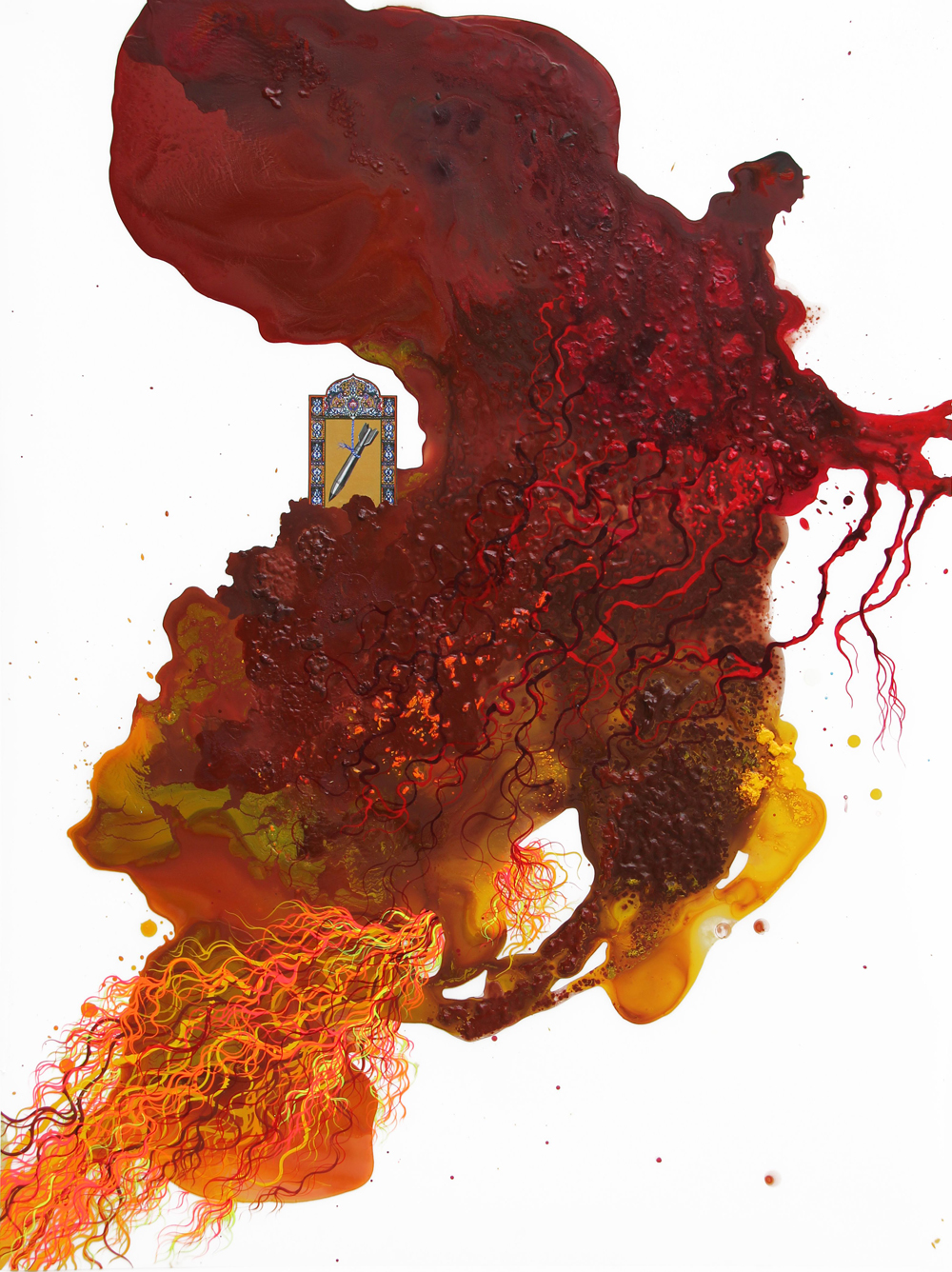 Hedieh Javanshir Ilchi | “There Hidden, Far Beneath and Long Ago”, 2012. Acrylic, gouache and handpainted collage on Mylar.42 x 31 ½ inches