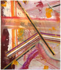 Chip Allen’s letting loose. He’s squeegeed, splattered, and gesturally brushed over his geometric abstractions, and by the looks of it action painting’s winning out. His loose, intuitive marks and smudges run interference across seemingly systematic lines, the resulting balance a taut